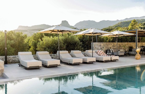There is your private heated pool, with a stylish stone patio for sunbathing and surrounded by green gardens. The shaded area around the villa has an outdoor lounge with a sofa and chairs and an alfresco dining table so the chef can prepare you a sunset meal!