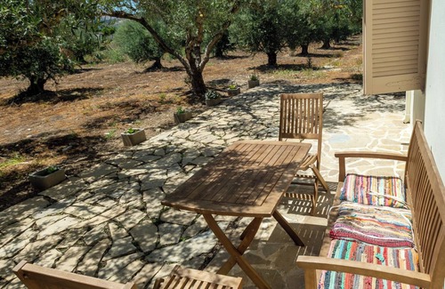 Situated in the middle of Messara’ s valley , surrounded by 2 hectars of olives , oranges , bananas and pomegranates , Casa Cicala is composed of 2 big bedrooms with single or double beds , a flat screen T.V. , a big living room , a lunch room , a fully equipped kitchen , a big rest room with a shower , a patio and an outdoor veranda with a big table to enjoy meals in the shade of a natural pergola.
