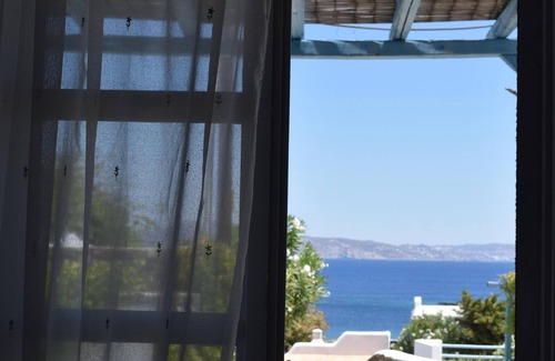 The house is independent, and is 80 meters from a beautiful sandy beach. It is a combination of a romantic, beautiful traditional house, which offers you what you expect for your vacation. You will love the exceptional view to the Aegean Sea and Mykonos from the veranda, with stone and flowers table.