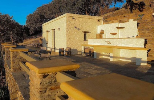The "Patitiri" winery house suggests a whole new model of accommodation in Andros island. It is the ideal place to unwind in luxury and take in the vibes of a revived vineyard and cordial hospitality. Guests can enjoy privacy and unlimited stunning view at sea and Chora from the comfort of their lounger and at the same time cut and taste fresh fruits and veggies just a few steps beneath the house.