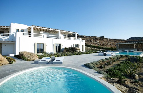 Villa is located in the southern part of Mykonos overlooking the islands of Paros and Naxos while offering stunning views over the Aegean Sea.