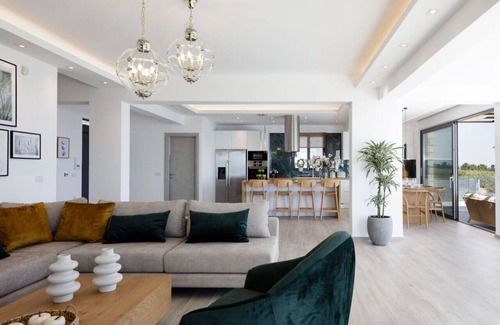 Exclusive Modern Villa with impeccable sea view, private heated pool, hot tub is located in Kefalas. Exclusive Modern Villa with impeccable sea view, private heated pool, hot tub provides accommodation, featuring View, Private Pool, Balcony/Terrace, among other amenities. This Villa features View, Private Pool, Balcony/Terrace, to make your stay a comfortable one.