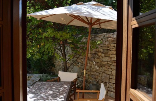The stone-paved garden features Mediterranean plants, trees and herbs and offers unobstructed views of the valley and surrounding mountains. Choose the shady corner which suits you for reading or having a meal outdoors.
