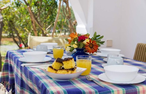 The perfect base to explore south west Crete. A great choice of swimming spots and trekking routes lie within a short distance. You are looking at a fully furnished family house situated in a secluded garden, just 200 meters from a sandy beach and 600 meters from Frangokastello. Levantes is located within a complex of four independent houses and is surrounded by olive trees, flowers and various fruit trees. The house is serviced daily. The price includes daily housekeeping.