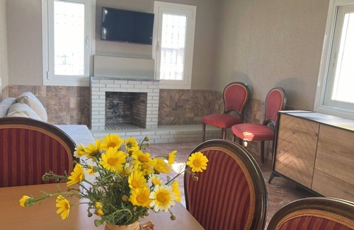 Escape to a marvelous villa in Rafina with 2 cozy bedrooms - one with a queen bed, one with a twin and full bed. This cool retreat features a living room with a comfy sofa bed, perfect for relaxing after a day of exploring. Enjoy the convenience of amenities like heating, a washing machine, and an iron. With 2 bathrooms equipped with a shower and bidet, your stay will be nice and hassle-free. We look forward to hosting you at our place.