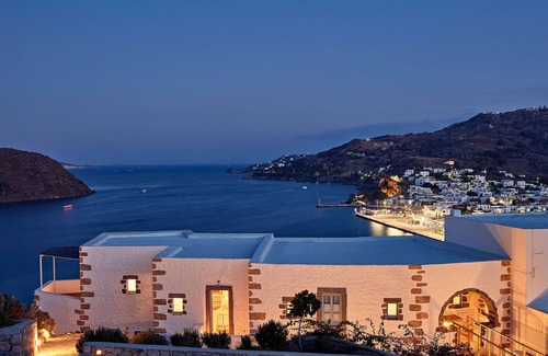 In a spectacular location above a bay on the island of Patmos stand the majestic Patmos Eye 1 Villa. This luxury villa in Skala offers stunning panoramic views of the sea and Patmos Chora, providing the perfect holiday villa escape for families and groups of friends looking to be enchanted by the magic of this gloriously seductive island.