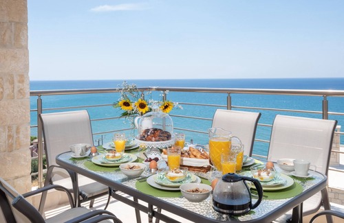 It consists of 3 bedrooms, 3 bathrooms with shower and washing machine, a large living room overlooking the sea, a fully equipped kitchen with dining area and 2 balconies with outdoor furniture.