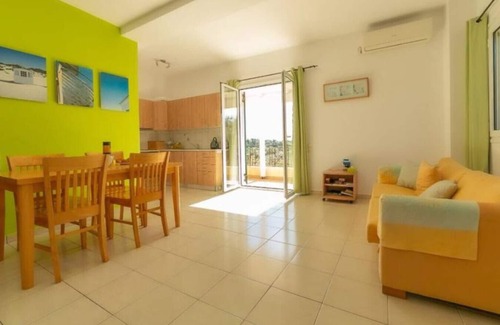 Apartment 3, 1st floor, includes a double bedroom, a single bedroom, and a twin room on a mezzanine. It features a new kitchen and luxurious bathroom (updated in 2023), a spacious living and dining area, and a full-length balcony with stunning views of the coast, mountains, and countryside.