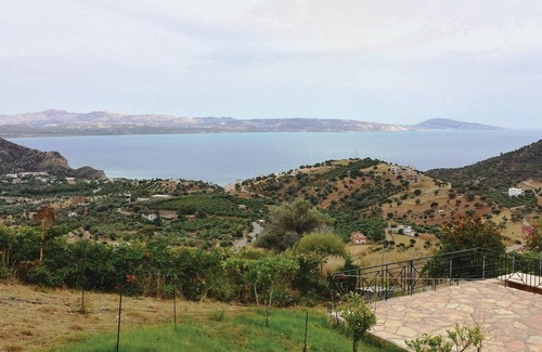 This spacious vacation home in typical Cretan architectural style is composed of a main house and an annex. The main area has an extended living and dining room on the first floor, a well-equipped kitchen and four bedrooms upstairs. Each of these bedrooms has access to a private balcony overlooking the bay of Agia Galini. In addition to the 8,300 m² plot, which is adorned with olive and fruit trees, you also benefit from a spacious pool. Through the annex with kitchen and living room you have access to a large veranda. Enjoy the view over the bay of Agia Galini. Agia Galini is located 61 km south of Réthymnon and 68 km southwest of Héraklion. Here you will vacation surrounded by the mountains Asideroto, Kedros and Psiloritis. The picturesque harbor town is well visited in summer. Take advantage of the beaches and the unique landscapes of the island. For a carefree stay in this property we recommend you to have a car.
