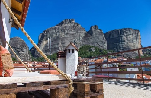 Penthouse with stunning panoramic views of the imposing rocks of Meteora. It is located in the center of Kalampaka. It has been recently redecorated internally with antique style. Really cosy home combining the luxury along with the simplicity.---------------------------------------------------------------------------------------------------------------------------------------------------------------