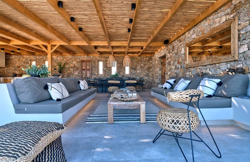 Mardiva Farmhouse is a two-level stone-built villa enjoying unobstructed views of the gulf of Molos, the neighbouring Naxos Island and the surrounding hills. The unique positioning of the estate in an unspoiled sea-side valley, provides the necessary privacy for a quite escape, while, at the same time, it allows guests to enjoy the vibrant cosmopolitan lifestyle of the Naousa village, located just 10 minutes away.