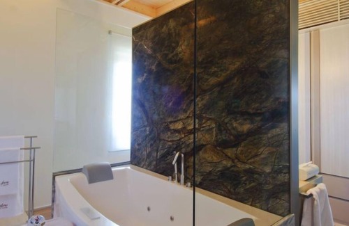 "Alivia", 4-room villa 214 m2 on 2 levels. Spacious and bright, beautiful and modern furnishings: open large living/dining room with dining table and satellite TV (flat screen), radio and wood-burning stove. Exit to the swimming pool. 2 double bedrooms, each room with 2 beds. Exit to the terrace, to the swimming pool. Open kitchen (oven, dishwasher, 4 ceramic glass hob hotplates, electric coffee machine, Capsules for coffee machine (Dolce Gusto) extra, cooking island). Bath/WC. Air-conditioning. Upper floor: (open staircase), 1 large room with 1 sofabed, 1 double bed, bath/shower/WC, double hand-basin, hydro massage bath and satellite TV (flat screen). Exit to the balcony. Air-conditioning. Balcony, large terrace. Sitting area. Beautiful view of the mountains, the garden and the countryside. Facilities: washing machine, telephone, safe, iron. Internet (WiFi, free). Please note: non-smoking house. 1042K910029658011042K91002965801