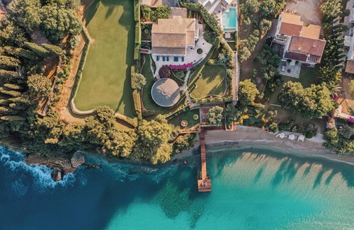 Step outside and immerse yourself in an enchantinglandscaped garden, abundantof indigenous floraand colourful, fragrant blooms. An impressivedome, complete with comfortable seating and a rounddining table, offers a shaded retreatfor entertaining and gartherings, arguably the best table in town. Long convivial dinners here, under the star lit skyfused withthe sound of the lapping sea will last in your memory long after you depart.Strategically placed patios with lounge areas invite you to unwind under theGreek sun. Descend the private staircase and discover yourpathway toaccess a pristine beachfront setting. Sun worshippers can top up their tanon the sun loungers located on the serene private jetty, above thecool embrace of the sparkling Ionian Sea. For added convenience, threeprivate parking spacesensure seamless arrivals and departures.